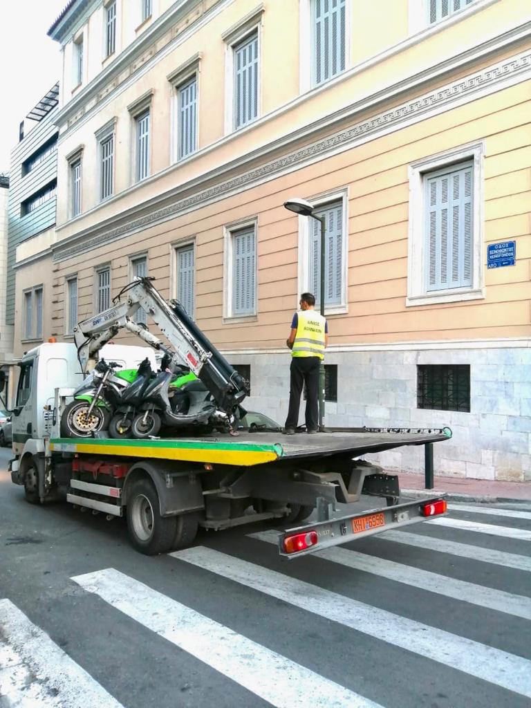 Από τον Σεπτέμβριο του 2019 έχουν απομακρυνθεί από τις γειτονιές της Αθήνας 1.194 δίκυκλα και 1.126 αυτοκίνητα, δηλαδή συνολικά 2.320 οχήματα, δίνοντας σημαντική «ανάσα» στις γειτονιές και το κέντρο της Αθήνας τόσο για περπάτημα στα πεζοδρόμια όσο και με θέσεις στάθμευσης που δημιουργούνται.