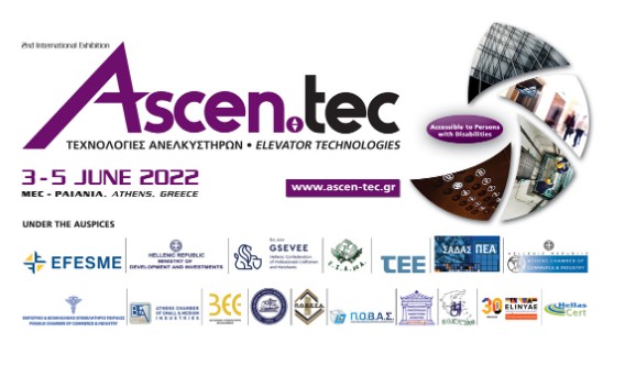 Ηχηρά ονόματα του κλάδου παρουσιάζουν προϊόντα και λύσεις για τη σύγχρονη, ποιοτική και ασφαλή χρήση των ανελκυστήρων! Η μοναδική εξειδικευμένη έκθεση της χώρας Ascen.tec / Τεχνολογίες Ανελκυστήρων επιστρέφει πιο δυναμική από ποτέ, ξανά στον φυσικό της χώρο. Η 2η διοργάνωση θα πραγματοποιηθεί από τις 3 έως τις 5 Ιουνίου 2022, στο εκθεσιακό κέντρο MEC Παιανίας.