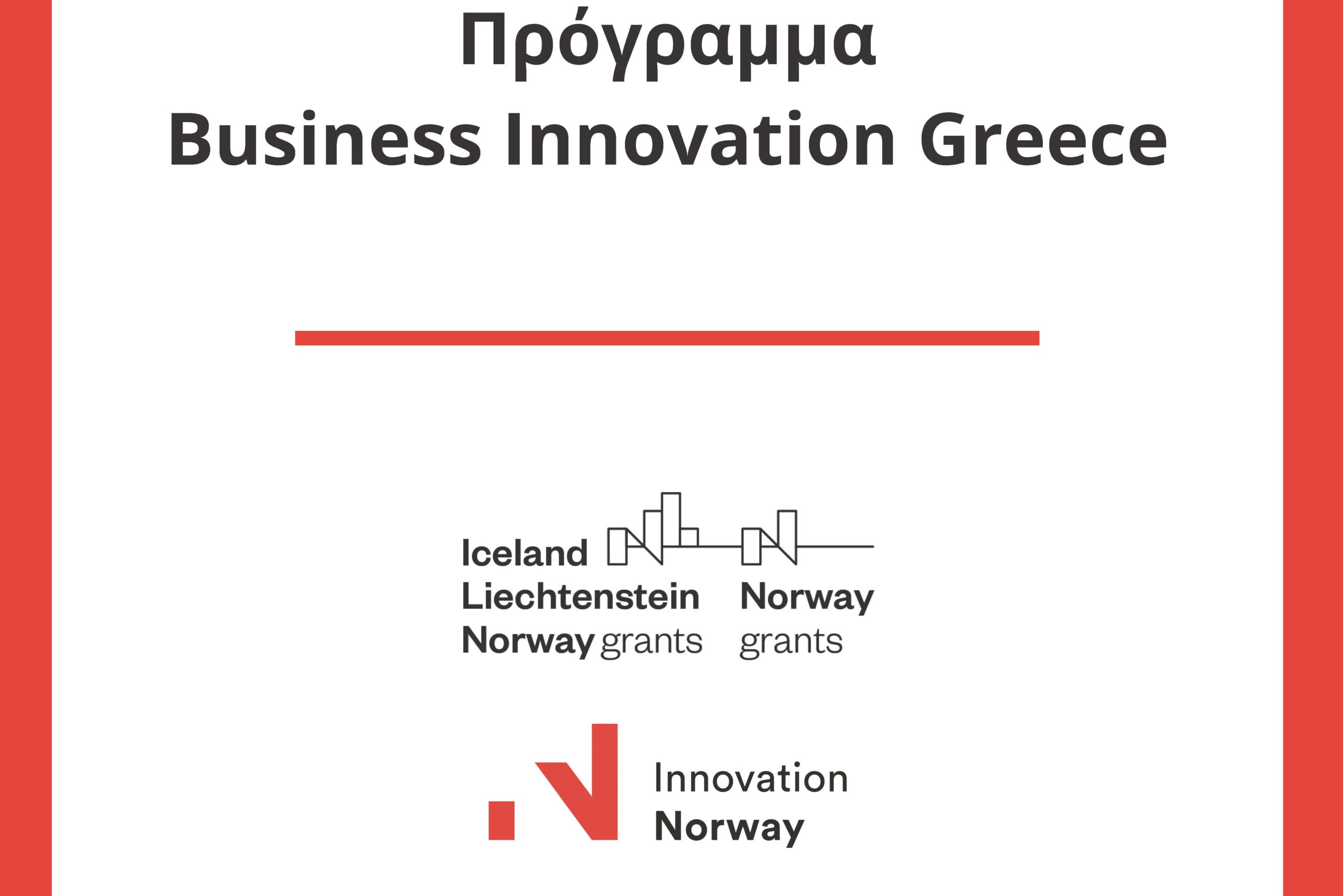 Για κάθε ενδιαφερόμενο που αναζητεί χρηματοδότηση για να αναπτύξει την επιχείριση του, το πρόγραμμα “Business Innovation Greece” είναι μια ιδανική λύση. Το πρόγραμμα είναι μέρος των EEA & Norway Grants (Ευρωπαϊκός Οικονομικός Χώρος ή ΕΟΧ), 2014-2021 και προσφέρει χρηματοδότηση σε επιχειρήσεις με στόχο τη στήριξη του ιδιωτικού επιχειρηματικού τομέα της Ελλάδας.