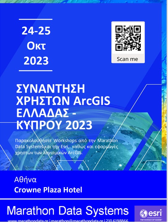 Η Constrat ανακοινώνει την συμμετοχή της στην Συνάντηση Χρηστών ArcGIS Ελλάδας – Κύπρου 2023, που διοργανώνει η Marathon Data Systems, στο Crowne Plaza Hotel στην Αθήνα, την Τρίτη 24 και Τετάρτη 25 Οκτωβρίου.