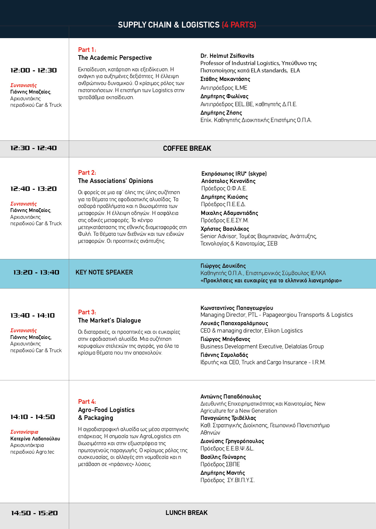 Να συζητηθούν λύσεις, εναλλακτικά σενάρια, να τεθούν προβληματισμοί αλλά και καλές πρακτικές. Να τεθούν θέματα που απασχολούν τους τομείς της Εφοδιαστικής Αλυσίδας και των Μεταφορών.