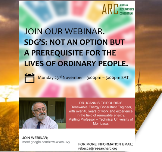 Οι στόχοι της αειφόρου ανάπτυξης (Sustainable Development Goals-SDG) θα αποτελέσουν το θέμα διαδικτυακού σεμιναρίου, με τον Δρ. Ιωάννη Τσιπουρίδη, Μηχανικό Σύμβουλου Ανανεώσιμων Πηγών Ενέργειας, με πάνω από 40 χρόνια εργασίας και εμπειρίας στον τομέα των ανανεώσιμων πηγών ενέργειας, Επισκέπτης Καθηγητής στο Τεχνικό Πανεπιστήμιο της Μομπάσα.