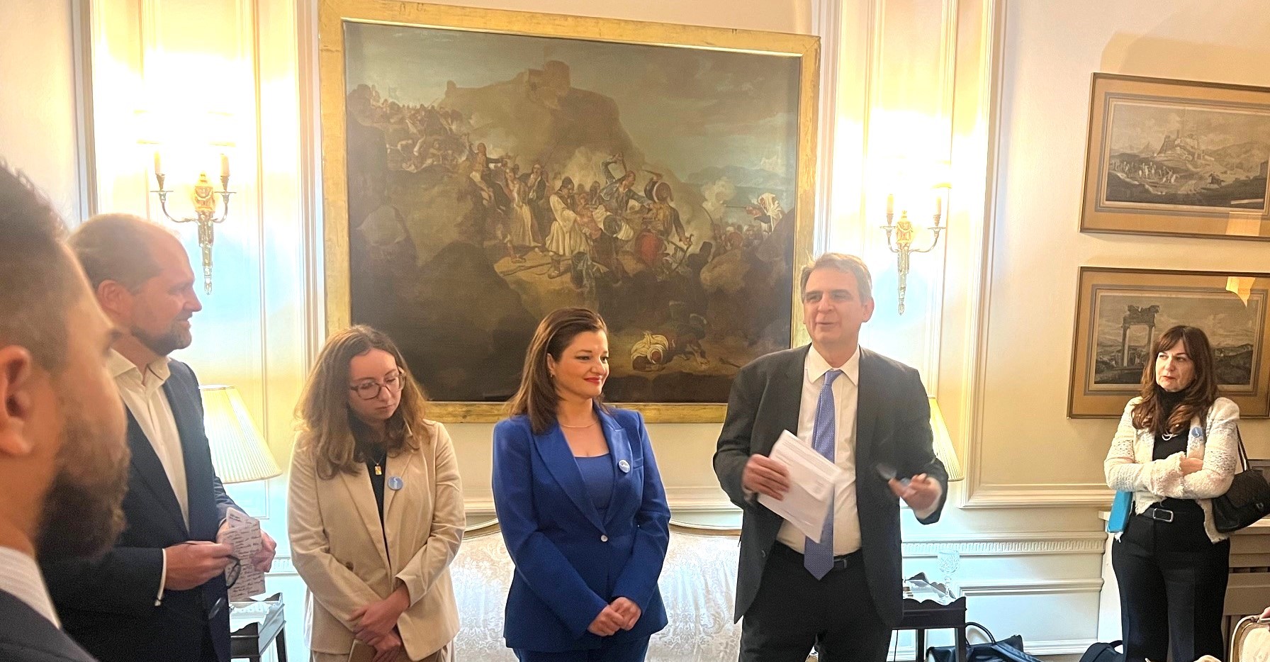 Ιδιαίτερα παραγωγική και επιτυχημένη ήταν η δεξίωση που παρατέθηκε στην Ελληνική Πρεσβευτική Κατοικία στο Λονδίνο με την ευκαιρία της 9ης Παγκόσμιας Συνδιάσκεψης για τους Ωκεανούς (9th Our Ocean Conference) που θα φιλοξενήσει η χώρα μας τον Απρίλιο του 2024, με την συμμετοχή διακεκριμένων προσωπικοτήτων, εκπροσώπων Υπουργείων, όπως από το Υπουργείο Περιβάλλοντος, το Υπουργείο Εξωτερικών και το Υπουργείο Μεταφορών της Μεγάλης Βρετανίας, καθώς και εκπροσώπων διεθνών οργανισμών και φορέων, όπως από το Διεθνή Ναυτιλιακό Οργανισμό (IMO), την Ευρωπαϊκή Τράπεζα Ανασυγκρότησης και Ανάπτυξης (EBRD), το Lloyds Foundation, το Παγκόσμιο Ινστιτούτο Πόρων (WRI), το Βρετανικό Εθνικό Κέντρο Ωκεανογραφίας, την Τράπεζα της Αγγλίας, την Ένωση Ελλήνων Τραπεζιτών Μεγάλης Βρετανίας, το Ελληνικό Ίδρυμα Πολιτισμού στο Η.Β., το Θαλάσσιο Εργαστήριο του Plymouth (PML), την Διεθνή Πρωτοβουλία για τους Κοραλλιογενείς Υφάλους, το Borealis Maritime, το Plastic Oceans, το Ίδρυμα Calouste Gulbenkian, το Blue Marine Foundation, εκπροσώπων της κοινωνίας των πολιτών, αλλά και funds για την γαλάζια οικονομία.