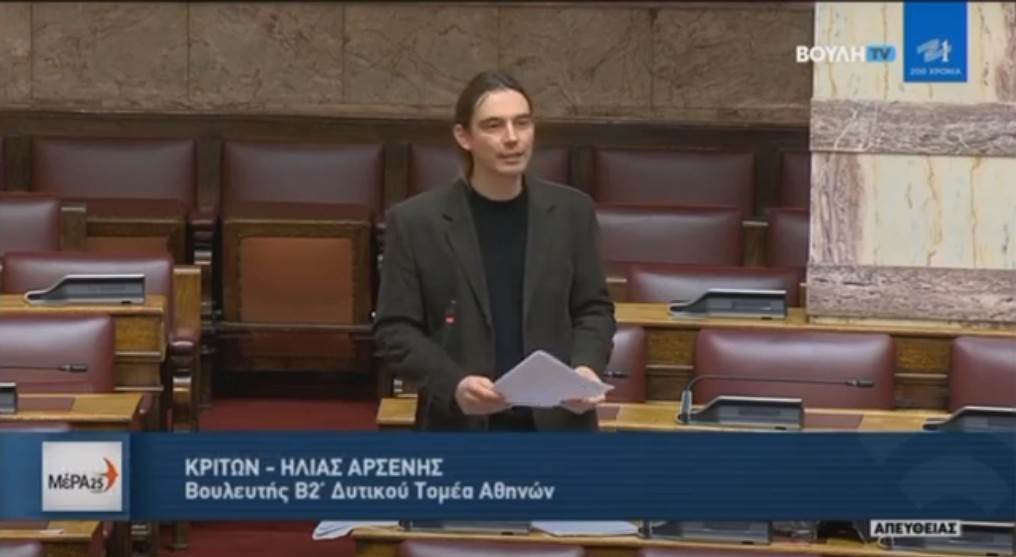 Στο συγκεκριμένο απόσπασμα, ο βουλευτή ΜέΡΑ25 Δυτικής Αθήνας, κ. Κρίτωνας Αρσένης, υπέβαλλε ερώτηση προς το Υπουργείο Περιβάλλοντος για την αμεση διακοπή εγκατάστασης αιολικών σε προστατευόμενες περιοχές. Στην ερώτηση, απάντησε ο υφυπουργός Περιβάλλοντος Ν.Ταγαράς.
