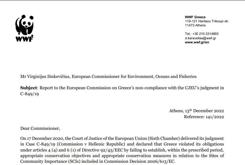 Σε αυτό το link θα βρείτε την επιστολή και την πλήρη αναφορά του WWF Ελλάς προς την Ευρωπαϊκή Επιτροπή.