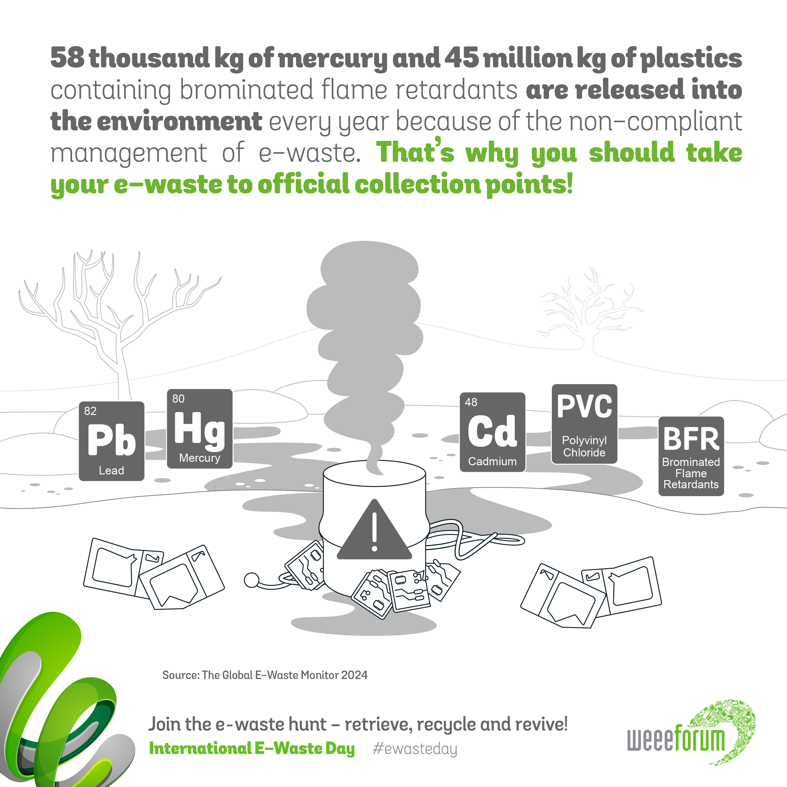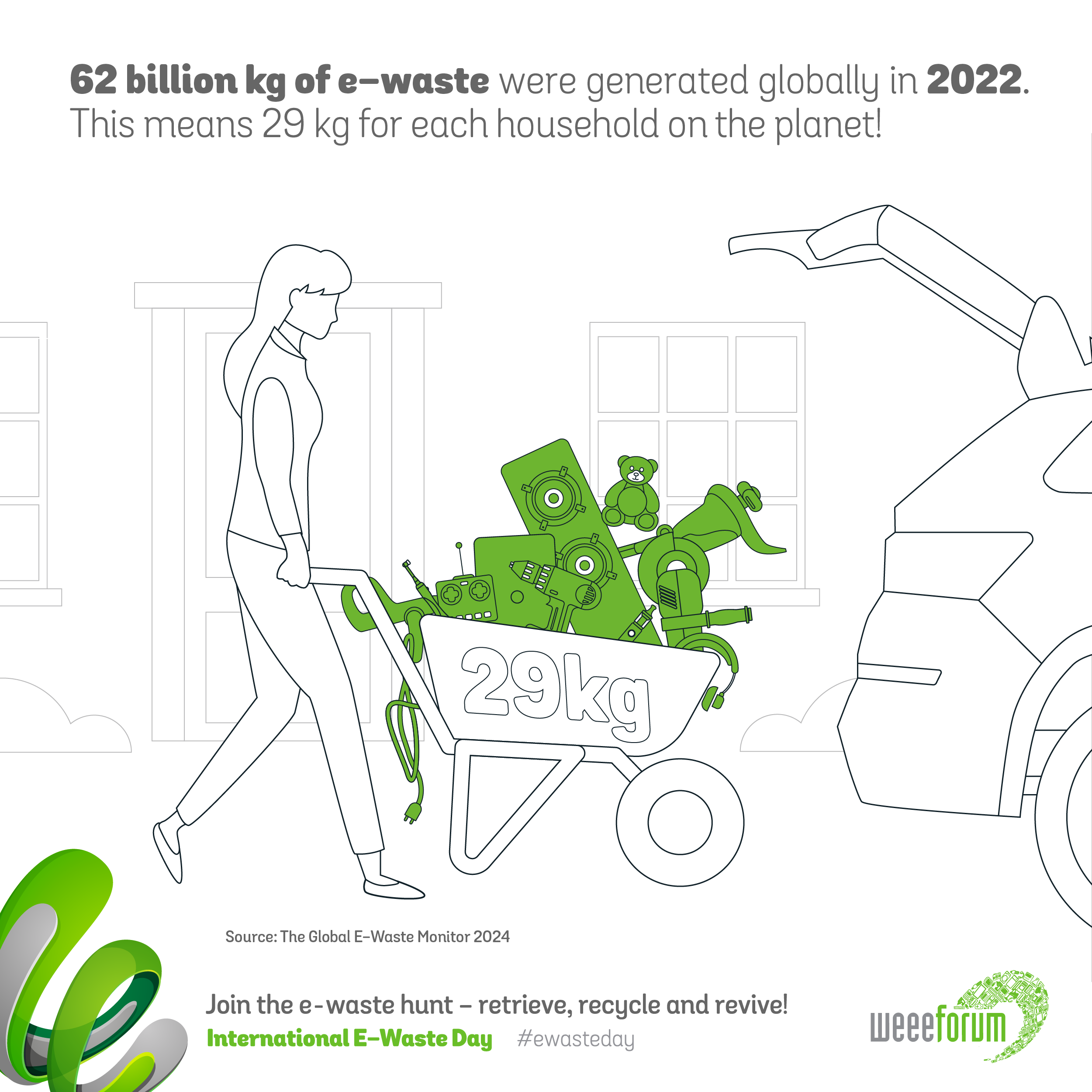 Ο Γενικός Διευθυντής του WEEE Forum, Pascal Leroy αναφέρει σχετικά για τα Απόβλητα Ηλεκτρικού και Ηλεκτρονικού Εξοπλισμού: «Μικρά ηλεκτρονικά και ηλεκτρικά είδη, όπως κινητά τηλέφωνα, παιχνίδια, τηλεχειριστήρια, κονσόλες παιχνιδιών, ακουστικά, λαμπτήρες, οθόνες ,εξοπλισμός θέρμανσης και ψύξης και φορτιστές βρίσκονται παντού. Και τα ηλεκτρονικά εξαρτήματα που είναι ενσωματωμένα σε μικρά και μεγάλα καταναλωτικά προϊόντα ακόμη και σε ρούχα είναι πλέον πανταχού παρόντα. Σύμφωνα με το UNITAR και την ITU, μόνο τα 844 εκατομμύρια ηλεκτρονικά τσιγάρα που πατάχθηκαν το 2022 περιέχουν αρκετό λίθιο, για παράδειγμα, για να τροφοδοτήσουν 15.000 ηλεκτρικά αυτοκίνητα».