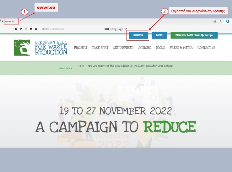 Οι αιτήσεις υποβάλλονται μέσω της ιστοσελίδας www.ewwr.eu, όπου υπάρχουν οι οδηγίες συμμετοχής, αλλά και εργαλεία και ιδέες για τη διοργάνωση δράσεων. Οι καταχωρήσεις των δράσεων λήγουν στις 13 Νοεμβρίου 2022. Πέρυσι, στην Ευρωπαϊκή Εβδομάδα Μείωσης Αποβλήτων, υλοποιήθηκαν 82 ελληνικές δράσεις και στο σύνολο των 12.500 δράσεων πανευρωπαϊκά, τρεις ελληνικές δράσεις προκρίθηκαν ως φιναλίστ στα βραβεία EWWR και μία βραβεύθηκε ως η καλύτερη στην κατηγορία Εκπαιδευτικά Ιδρύματα. Ευελπιστούμε στη συμμετοχή σας για ακόμη περισσότερες δράσεις.