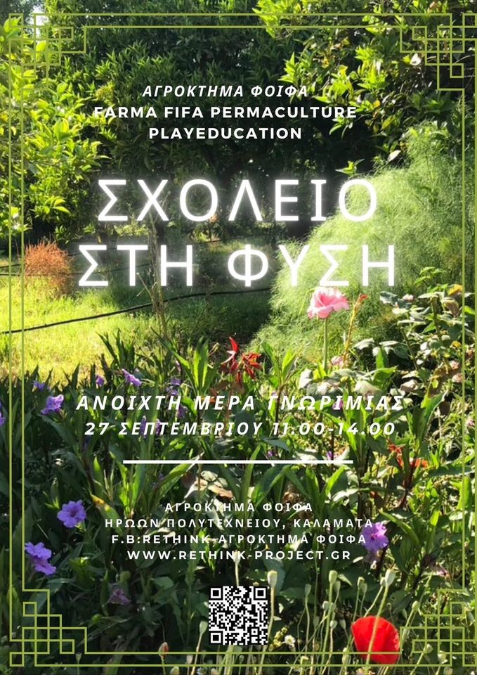 Το αγρόκτημά Φοίφα,στη Μεσσηνία, γνωστό για τις περιβαλλοντικές του δράσεις, ξεκινά το #ΣχολείοΣτηΦύση. “Η εκπαιδευτική εμπειρία των προηγούμενων χρόνων της εξερεύνησης και βίωσης των γνωστικών αντικειμένων, αξιών, δεξιoτήτων, δημιουργικών διαδικασιών που προκύπτουν από την παρατήρηση, την μαθησιακή εμπειρία και εν τέλει την ζωή μέσα σε ένα φυσικό οικοσύστημα, αποκτά μόνιμη μορφή για μικρούς και μεγάλους” αναφέρει η διέυθυνση του Αγροκτήματος.