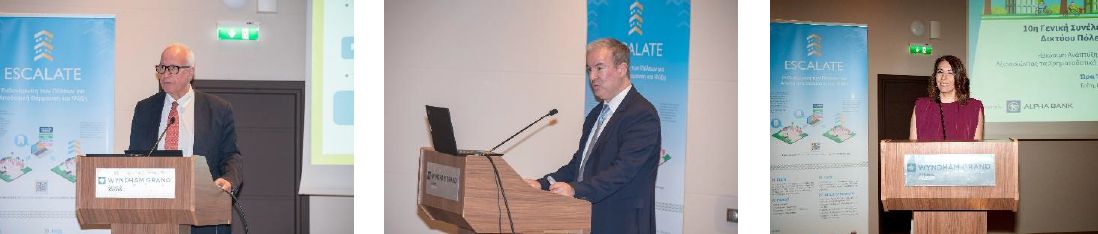Στο πλαίσιο της εκδήλωσης πραγματοποιήθηκαν, επίσης, θεματικές ομιλίες που ανέδειξαν κρίσιμες πτυχές της ενεργειακής μετάβασης και της χρηματοδότησης των Δήμων. Ο Πρόεδρος της Αναπτυξιακής Αθήνας κ. Παναγιώτης-Πήτερ Κόντης παρουσίασε το θέμα «Διαμόρφωση και προώθηση συμβάσεων ενεργειακής μετάβασης», ενώ ο Επικεφαλής του Τμήματος Τραπεζικών Συναλλαγών για Δημόσιους και Επενδυτικούς Φορείς της ALPHA BANK κ. Χρήστος Παναγής ανέπτυξε την εισήγησή του με τίτλο «Η υποστήριξη των Δήμων μέσω χρηματοδοτικών εργαλείων και προγραμμάτων».