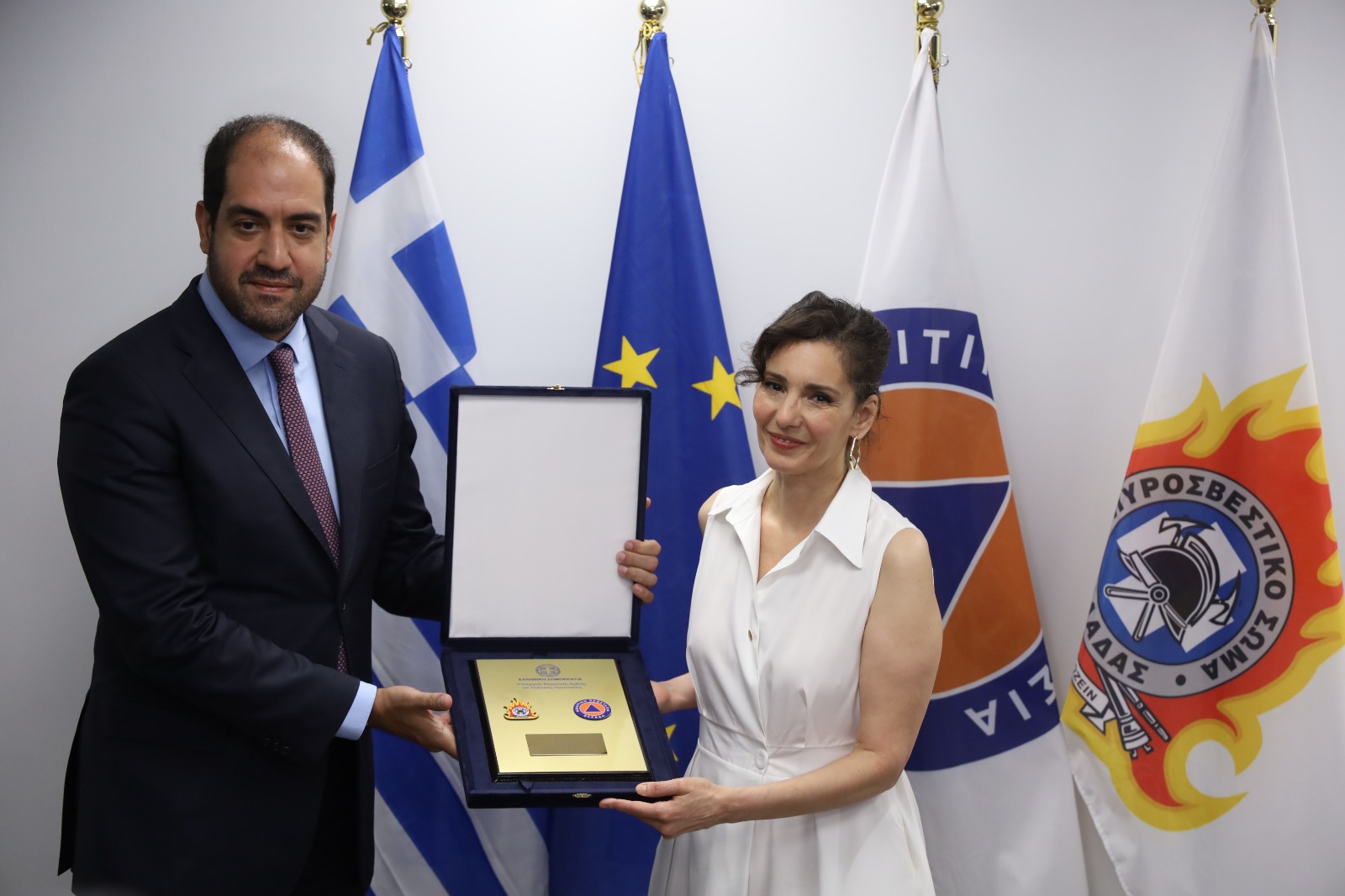 Ο Υπουργός Κλιματικής Κρίσης και Πολιτικής Προστασίας, Γιάννης Κεφαλογιάννης, υποδέχθηκε, στο Υπουργείο, την Επίτροπο της Ευρωπαϊκής Επιτροπής για την Ισότητα και την Ετοιμότητα & Διαχείριση Κρίσεων, Hadja Lahbib, στο πλαίσιο της διήμερης επίσκεψής της (17-18 Ιουλίου 2025) η οποία πραγματοποιείται με στόχο την ενίσχυση της συνεργασίας Ελλάδας – Ε.Ε. στους τομείς της πρόληψης, της ετοιμότητας και της ανταπόκρισης σε καταστάσεις έκτακτης ανάγκης.