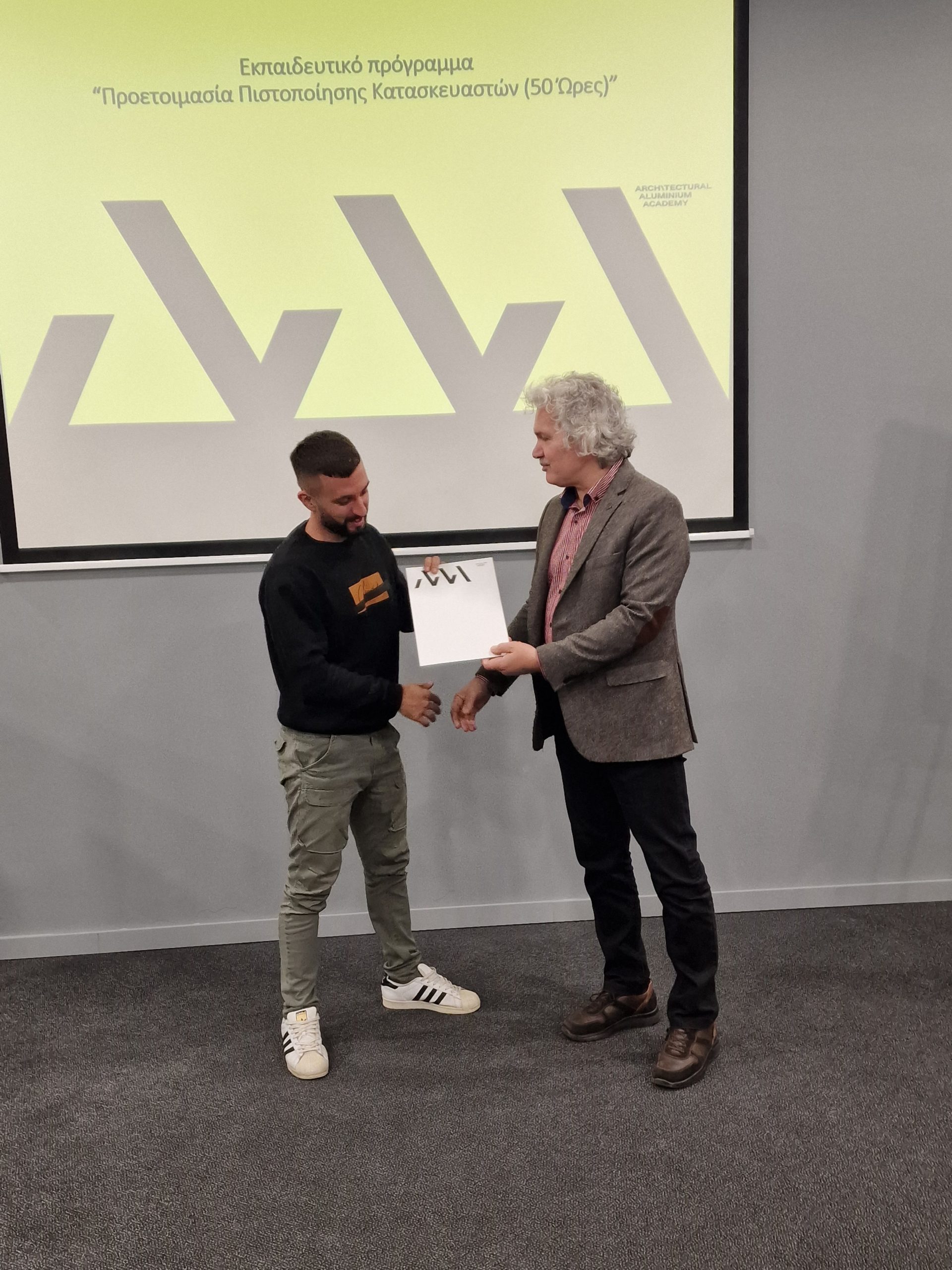 Ο πρόεδρος της Πανελλήνιας Ομοσπονδίας Βιοτεχνών Αλουμινίου Σιδήρου (Π.Ο.Β.Α.Σ) επισκέφτηκε τις εγκαταστάσεις της Architectural Aluminium Academy στην Μεταμόρφωση Αττικής, με την ευκαιρία της αποφοίτησης κατασκευαστών που παρακολούθησαν το εκπαιδευτικό πρόγραμμα «Κατασκευαστής Αρχιτεκτονικών Συστημάτων Αλουμινίου» χρονικής διάρκειας 50 ωρών.