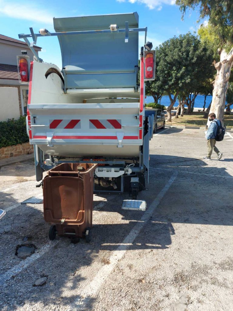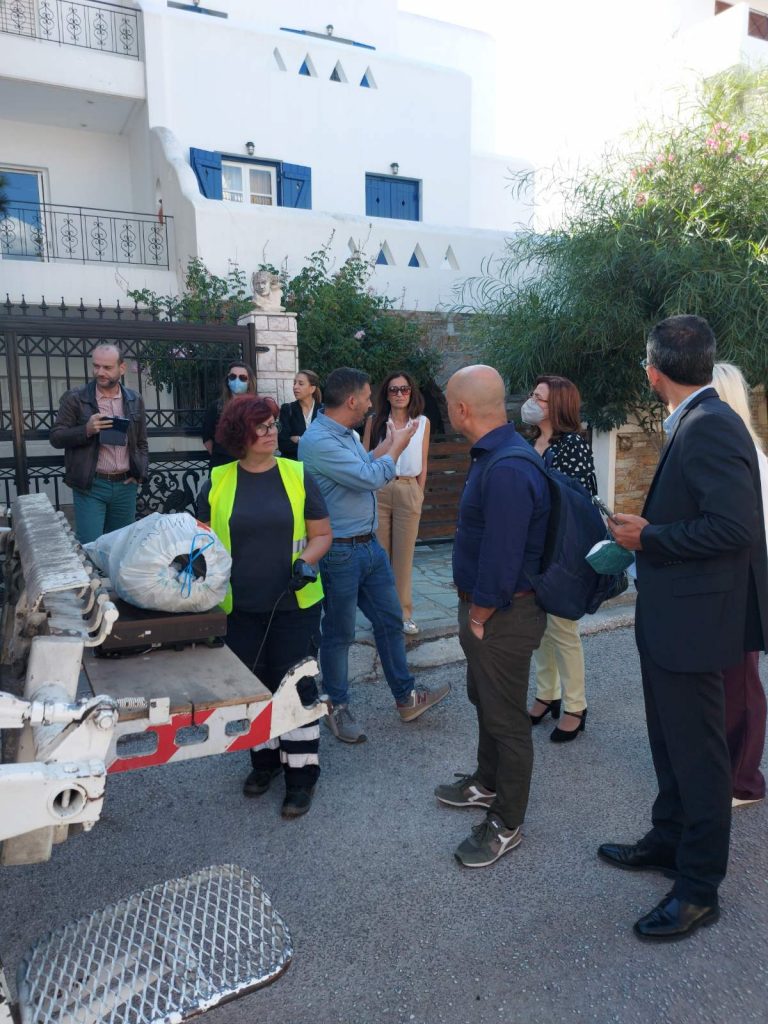 Επίσης παρακολούθησαν την διαδικασία αποκομιδής σύμμεικτων απορριμμάτων από τα Πηγαδάκια Βούλας, τα οποία συλλέγονται με προσωπικό κάδο για κάθε νοικοκυριό, ως μέρος του πιλοτικού προγράμματος Πληρώνω Όσο Πετάω, που αποτελεί βασικό κομμάτι του προγράμματος LIFE IP CEI GREECE και έχει ως στόχο την μείωση των απορριμμάτων και την επιβράβευση των δημοτών που διαχωρίζουν τα οργανικά και ανακυκλώσιμα απορρίμματά τους.