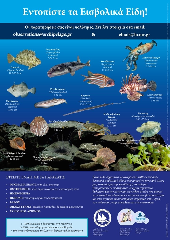 Είναι λοιπόν πολύ σημαντικό να αναφέρεται κάθε εντοπισμός ξενικού ή εισβολικού είδους που μπορεί να γίνει από όλους μας στην κατάδυση, στο ψάρεμα ή στο κολύμπι. Οι αναφορές από το Παρατηρητήριο Πολιτών του Ινστιτούτου Αρχιπέλαγος, καταχωρούνται στη βάση δεδομένων ELNAIS – Ellenic Network on Aquatic Invasive Species https://elnais.hcmr.gr/του Ελληνικού Κέντρου Θαλασσίων Ερευνών και σε σχετικές μεσογειακές βάσεις δεδομένων. Έτσι μπορούν οι επιστήμονες να έχουν σημαντικά δεδομένα για την κατανομή των ειδών αυτών, που θα μπορούσαν να προκαλέσουν δυσμενείς επιπτώσεις στα οικοσύστηματα, στην αλιεία αλλά και στην υγεία των θαλασσών μας γενικότερα.
