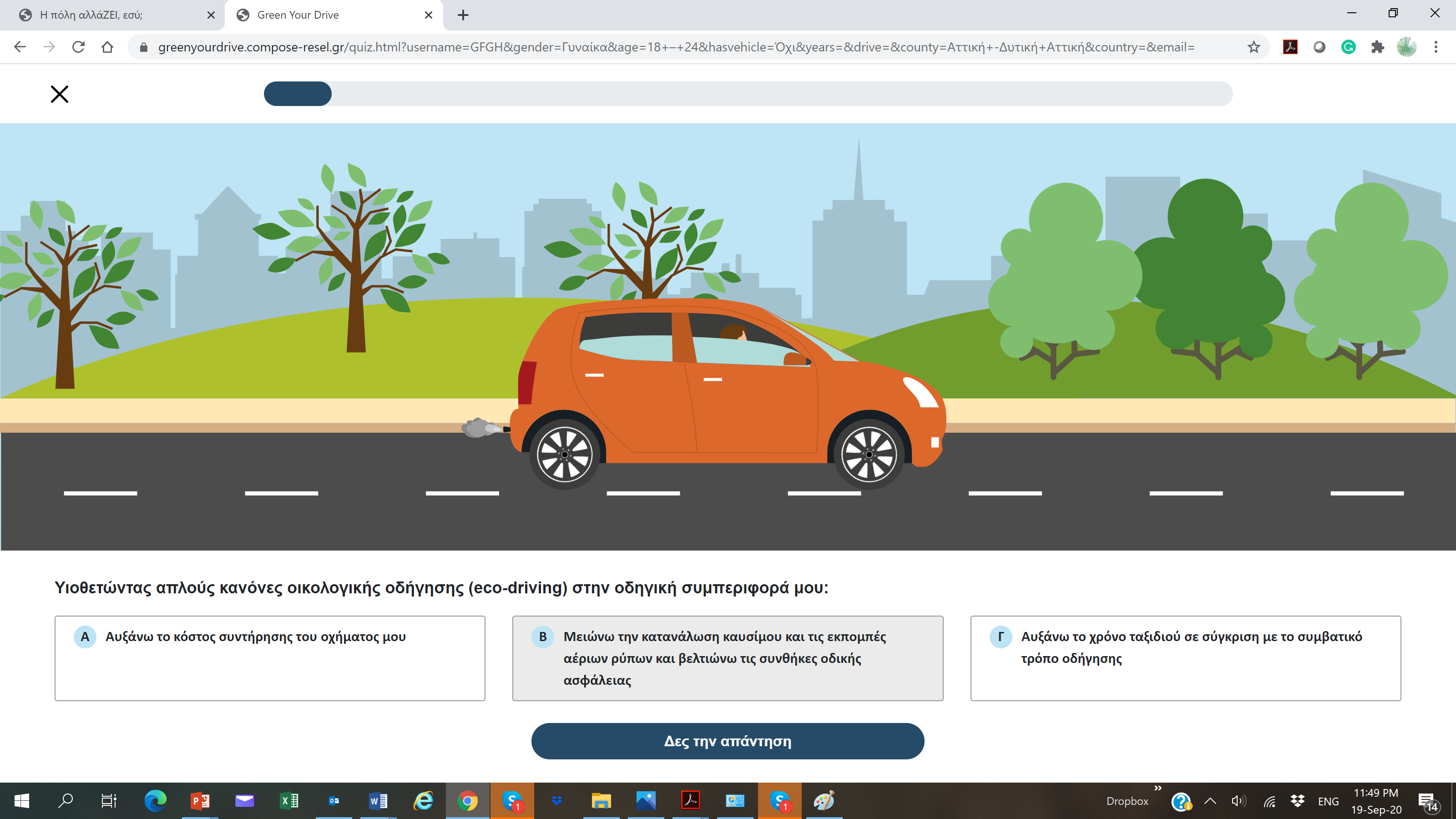 -Να τεστάρει τις γνώσεις του για την οικολογική οδήγηση και να εξοικειωθεί με τους Χρυσούς Κανόνες, με το GREEN YOUR DRIVE app