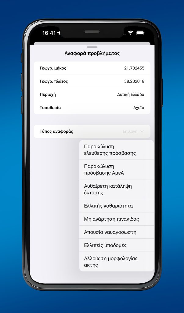 -Σε περίπτωση που διαπιστώσουν αυθαίρετη κατάληψη έκτασης ή και παρακώλυση ελεύθερης πρόσβασης, μπορούν μέσω της εφαρμογής να υποβάλουν τις προαναφερόμενες καταγγελίες.