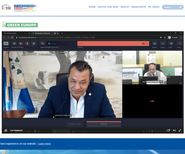 Ο δήμαρχςο Φυλής κ. Χρήστος Παππούς κατά την παρουσίαση των δράσεων του δήμου στην ευρωπαική τηλε συνάντηση.
