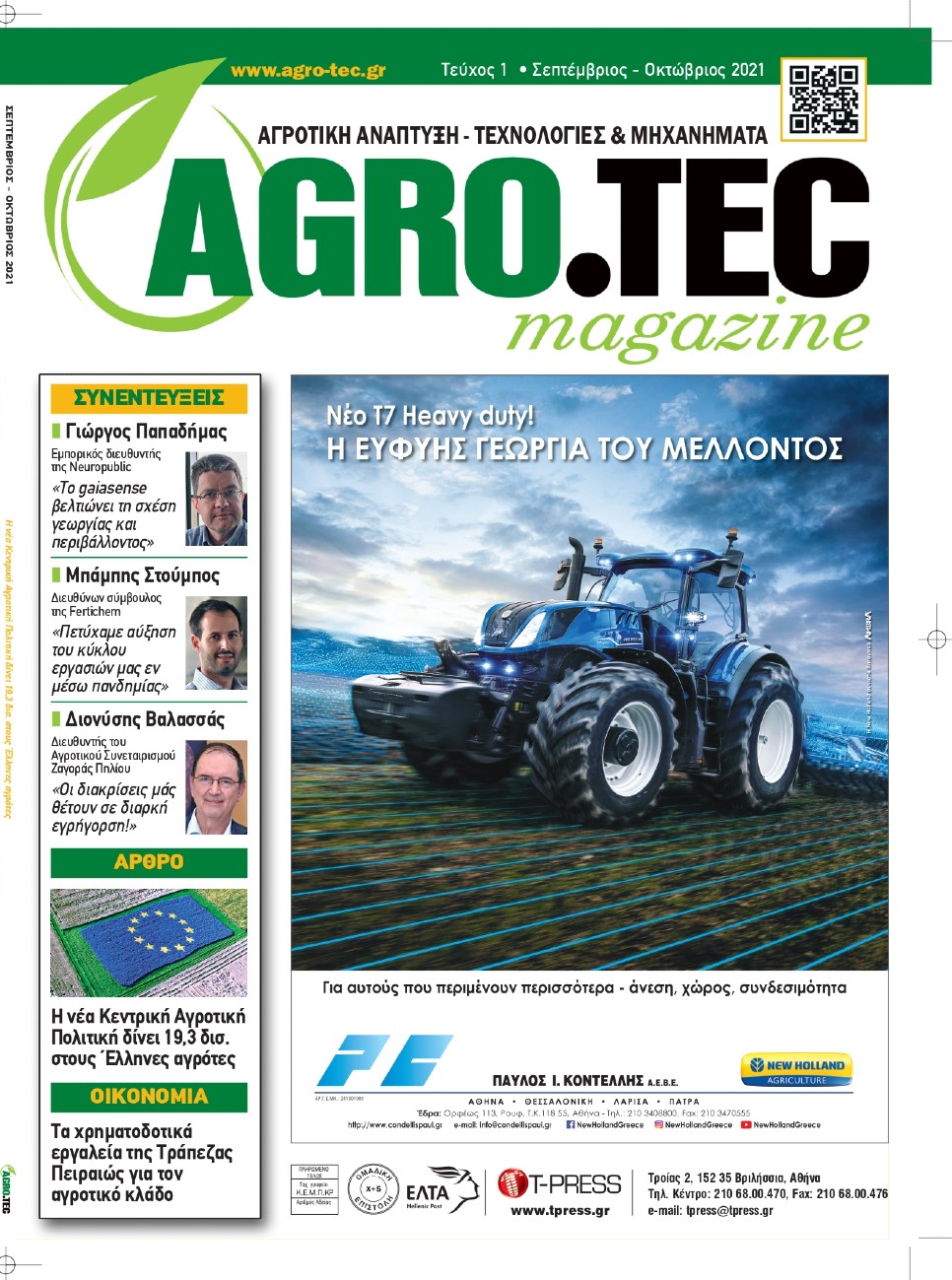 Το νέο συνδρομητικό περιοδικό, το ένατο κατά σειρά, είναι διμηνιαίο και κυκλοφόρησε πριν από λίγες μέρες. Το “Agro.tec“ φιλοδοξεί να εξελιχθεί σε «εργαλείο» για κάθε επαγγελματία του κλάδου με συνέπεια, γνώση και σοβαρότητα και κυρίως με υπεύθυνη ενημέρωση για όλα εκείνα που συνθέτουν τη νέα εποχή. Από τη μια την παράδοση και από την άλλη τα σύγχρονα μέσα που έρχονται από τον κόσμο του μέλλοντος.