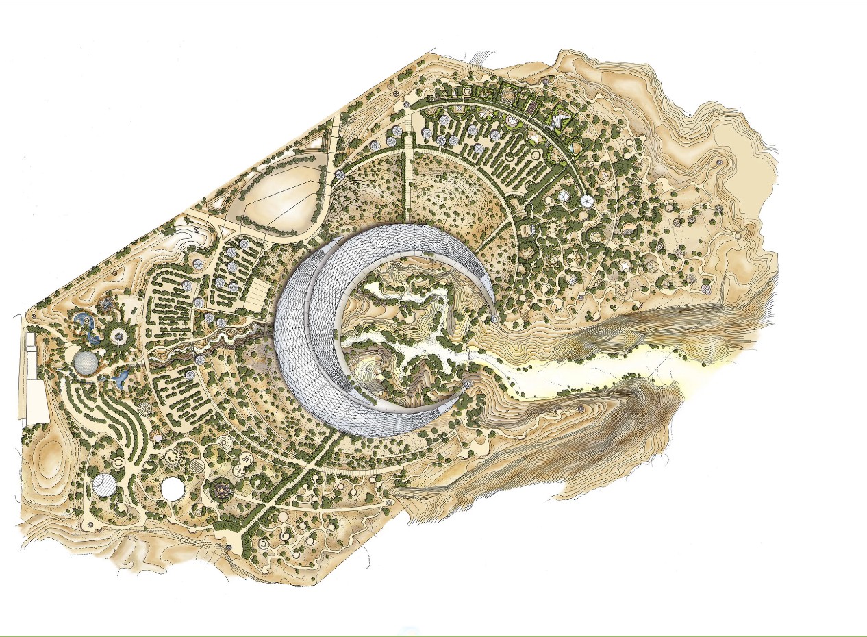Οι Διεθνείς Κήποι κατασκευάζονται σε ένα άνυδρο και εχθρικό περιβάλλον ακριβώς γιατί οι εμπνευστές του έργου, θέλουν να αναδείξουν την ανθεκτικότητα της φύσης, αλλά και την  κλιματική ιστορία της περιοχής, η οποία δεν ήταν πάντα έρημος.