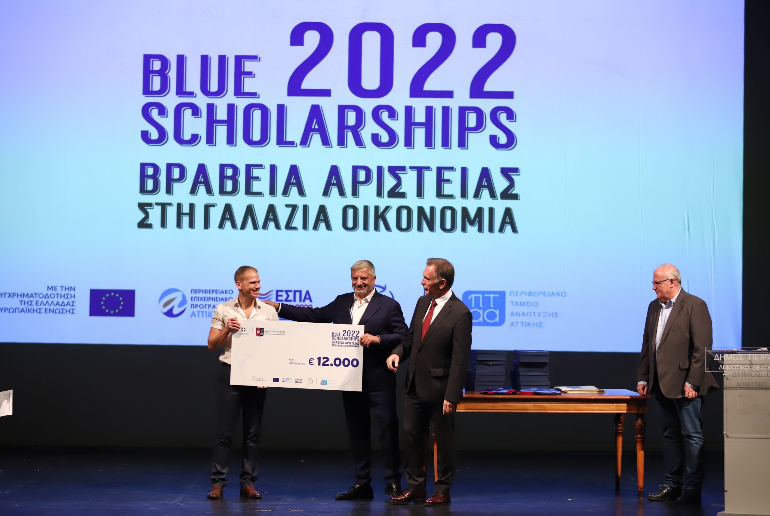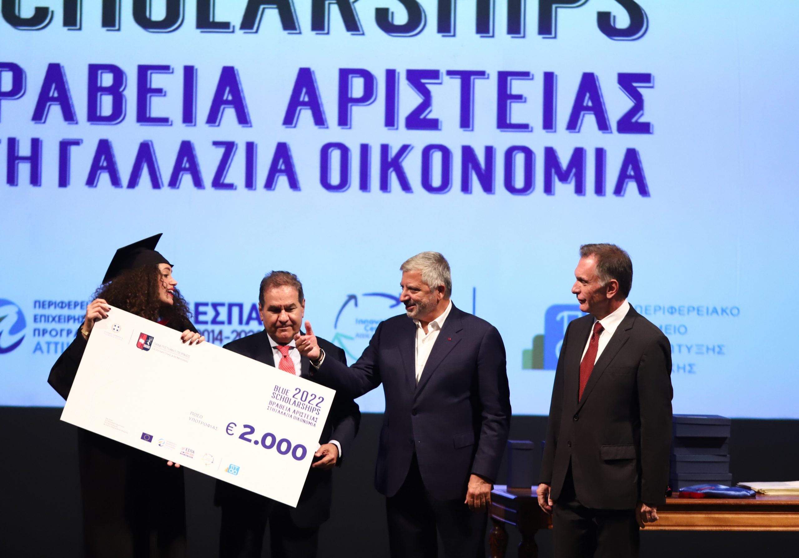 Με χρηματοδότηση της Περιφέρειας, δόθηκαν οι υποτροφίες Blue Scholarship Awards από το Πανεπιστήμιο Πειραιά σε ερευνητές και μεταπτυχιακούς φοιτητές που ασχολούνται με τη γαλάζια οικονομία. Το Κέντρο Καινοτομίας του Περιφερειακού Ταμείου Ανάπτυξης Περιφέρειας Αττικής, προσφέρει έμπρακτη στήριξη σε ερευνητές του πεδίου της Γαλάζιας Οικονομίας που επιλέχθηκαν από το Πανεπιστήμιο Πειραιά, χρηματοδοτώντας τέσσερις Διδακτορικές ή Μεταδιδακτορικές έρευνες με το ποσό των 12.000 ευρώ ανά ερευνητή και χορηγώντας έξι βραβεία σε μεταπτυχιακούς ερευνητές από όλα τα ΑΕΙ της χώρας που ασχολούνται με την Γαλάζια Οικονομία, με το ποσό των 2.000 ευρώ το καθένα.