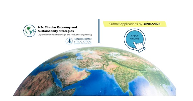 Το Πρόγραμμα Μεταπτυχιακών Σπουδών «Κυκλική Οικονομία και Στρατηγικές Αειφορίας» οργανώνεται από το Τμήμα Μηχανικών Βιομηχανικής Σχεδίασης και Παραγωγής της Σχολής Μηχανικών του Πανεπιστημίου Δυτικής Αττικής με ΦΕΚ Ίδρυσης του Π.Μ.Σ «3041/τ’ Β/17-06-2022.