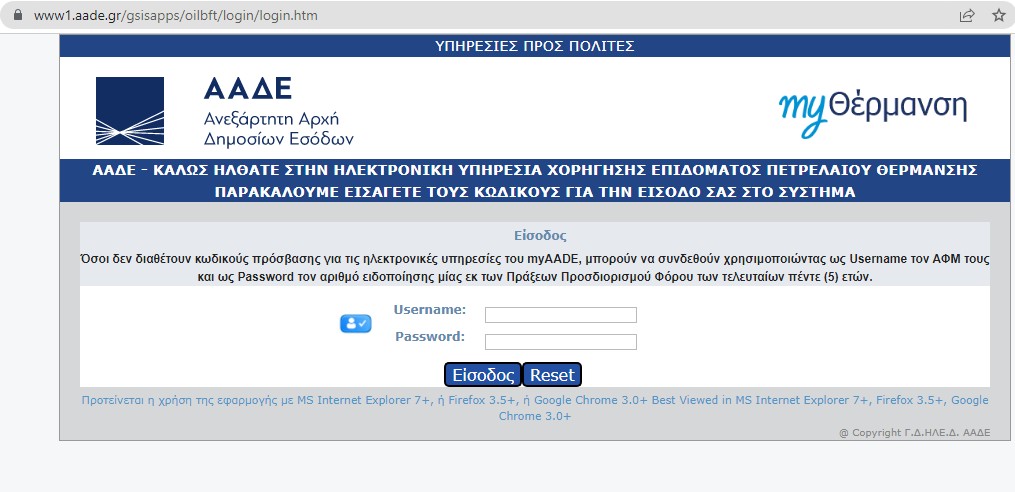 Υποβολή αιτήσεων τα περίπου 1,3 εκατομμύριο νοικοκυριά που είναι δικαιούχοι, μπορούν να πραγματοποιήσουν στην ηλεκτρονική πλατφόρμα MyΘέρμανση της ΑΑΔΕ, έτσι ώστε να λάβουν το επίδομα θέρμανσης για την περίοδο 2022-2023. Η πρώτη πληρωμή είναι προγραμματισμένη να γίνει έως τις 21 Δεκεμβρίου και θα αφορά εκείνους που και πέρυσι έλαβαν επίδομα, ενώ το ύψος του επιδόματος θα κυμανθεί από 100 – 1.600 ευρώ.