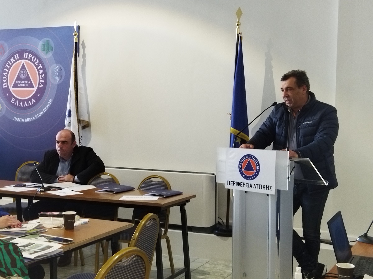 Ο Αντιπεριφερειάρχης Δυτικής Αττικής Ελευθέριος Κοσμόπουλος επισήμανε, μεταξύ άλλων, πως τα τελευταία χρόνια, από την ηγεσία της Περιφέρειας Αττικής, τα ζητήματα Πολιτικής Προστασίας έχουν τεθεί σε πρώτη προτεραιότητα, ενώ αναφέρθηκε διεξοδικά στις μελέτες και στα τεχνικά έργα, τα όποια έχουν υλοποιηθεί στην Δυτική Αττική. Παράλληλα, εξήρε την άψογη και διαχρονική συνεργασία της Περιφέρειας Αττικής με το Πυροσβεστικό Σώμα, ειδικά κατά τη διάρκεια των κρίσιμων ωρών εκδήλωσης των 3 μέγα-πυρκαγιών στη Δ. Αττική. Επίσης τόνισε, την σπουδαιότητα της συνεργασίας της Περιφέρειας Αττικής, με κορυφαία επιστημονικά Ιδρύματα της Χώρας, που ως σκοπό έχουν την χαρτογράφηση και κατ’ επέκταση, τις άμεσες παρεμβάσεις στα κρίσιμα σημεία, τα οποία χαρακτηρίζονται από υψηλή τρωτότητα και στην Περιφερειακή Ενότητα της Δυτικής Αττικής.