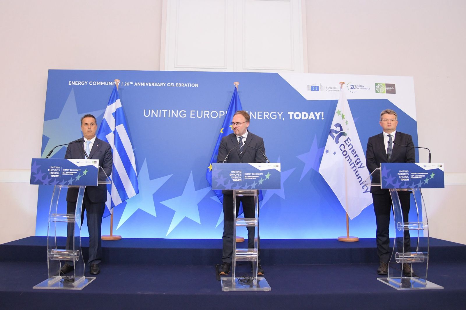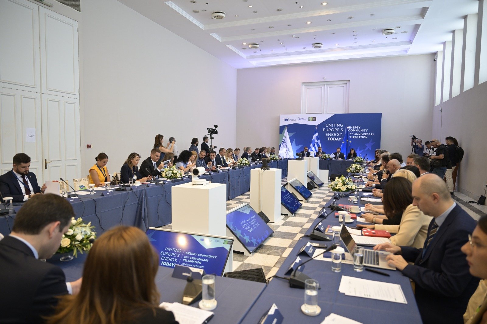 Πραγματοποιήθηκε στο Ζάππειο Μέγαρο, το Άτυπο Υπουργικό Συμβούλιο της Ενεργειακής Κοινότητας, το οποίο εφέτος είχε εορταστικό χαρακτήρα, με αφορμή και την επέτειο 20 χρόνων από την ίδρυσή της. Στο πλαίσιο της εκδήλωσης, ο Υπουργός Περιβάλλοντος και Ενέργειας, κ. Σταύρος Παπασταύρου υποδέχθηκε μεταξύ άλλων, τον Ευρωπαίο Επίτροπο για την Ενέργεια και τη Στέγαση, κ. Dan Jorgensen, τον Γενικό Διευθυντή της Ενεργειακής Κοινότητας, κ. Artur Lorkowski, καθώς και Υπουργούς Ενέργειας και Περιβάλλοντος των Συμβαλλόμενων Μερών της Ενεργειακής Κοινότητας.