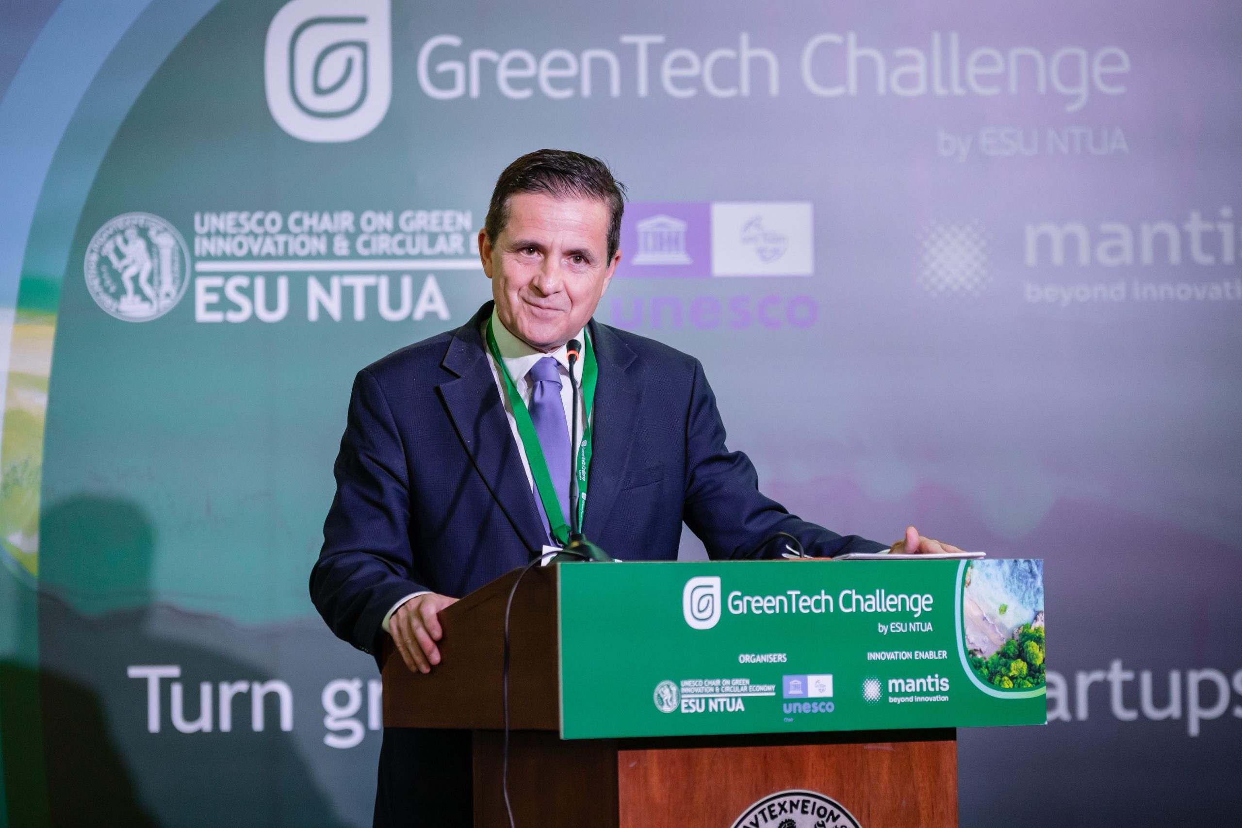 Το καλωσόρισμα της εκδήλωσης και την παρουσίαση του διαγωνισμού πραγματοποίησε ο καθηγητής Κωνσταντίνος Αραβώσης, Διευθυντής της Ερευνητικής Μονάδας Οικονομικής Περιβάλλοντος και Αειφόρου Ανάπτυξης στο Εθνικό Μετσόβιο Πολυτεχνείο, κάτοχος της Έδρας της UNESCO για την Πράσινη Καινοτομία και Κυκλική Καινοτομία και Γενικός Γραμματέας Δασών Υπουργείου Περιβάλλοντος και Ενέργειας.