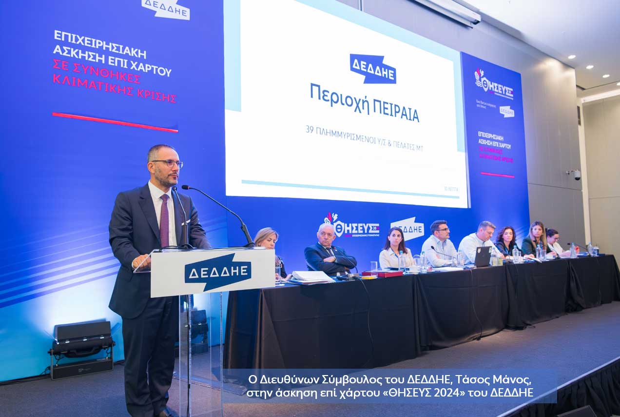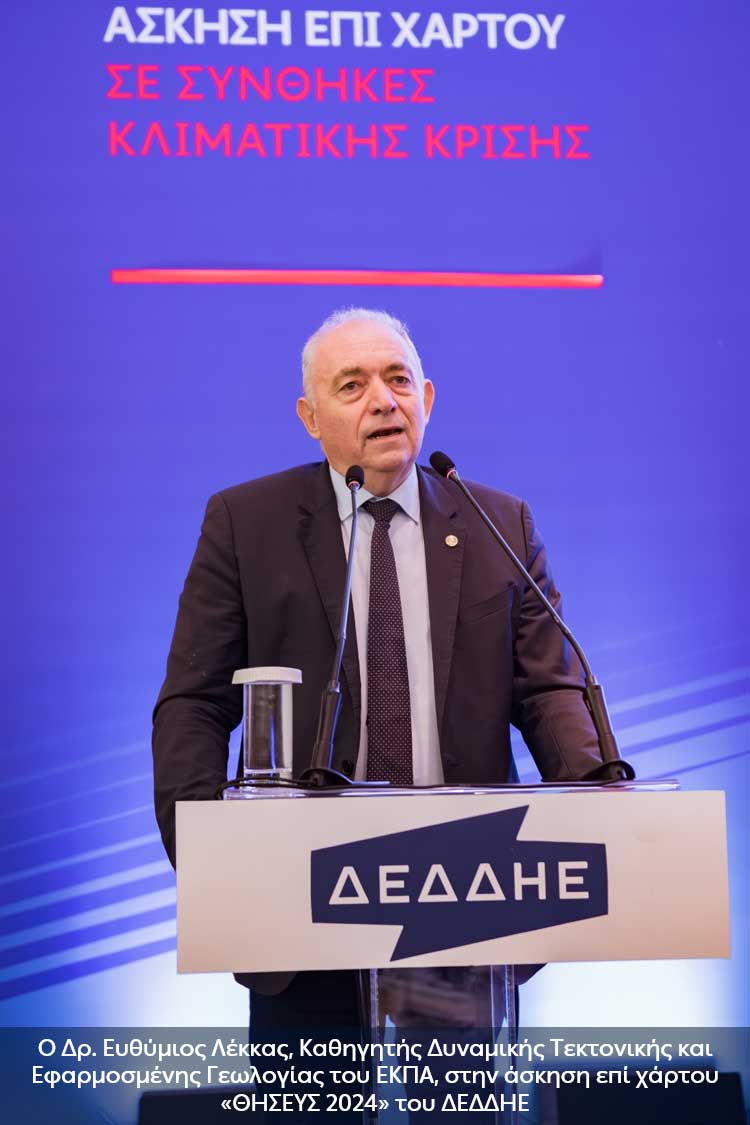 Η άσκηση επί χάρτου «ΘΗΣΕΥΣ 2024», διοργανώθηκε από τον ΔΕΔΔΗΕ σε συνεργασία με το Εθνικό και Καποδιστριακό Πανεπιστήμιο Αθηνών, υπό τον συντονισμό του καθηγητή Δυναμικής Τεκτονικής και Εφαρμοσμένης Γεωλογίας Δρ. Ευθύμιου Λέκκα.
