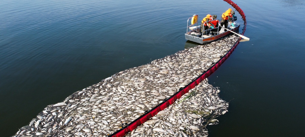 Σχεδόν 100 τόνους νεκρών ψαριών περισυνέλλεξαν οι Πολωνοί πυροσβέστες από τις όχθες του ποταμού Όντερ, ο οποίος διαρρέει τη Γερμανία και την Πολωνία.