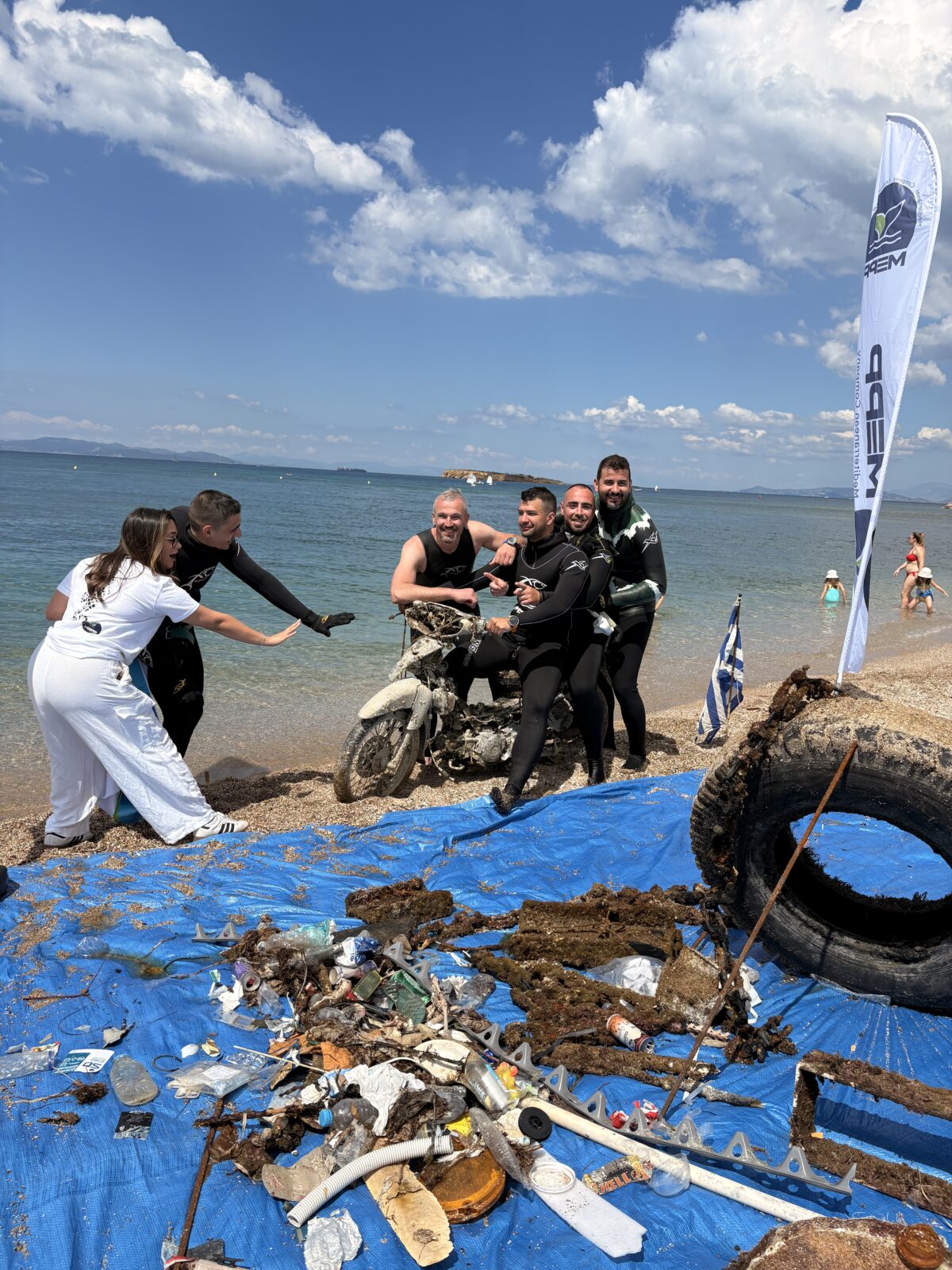 ⦁250+ kg απορριμμάτων συλλέχθηκαν (βυθού και ακτής) + μία μηχανή από τον βυθό (!!)