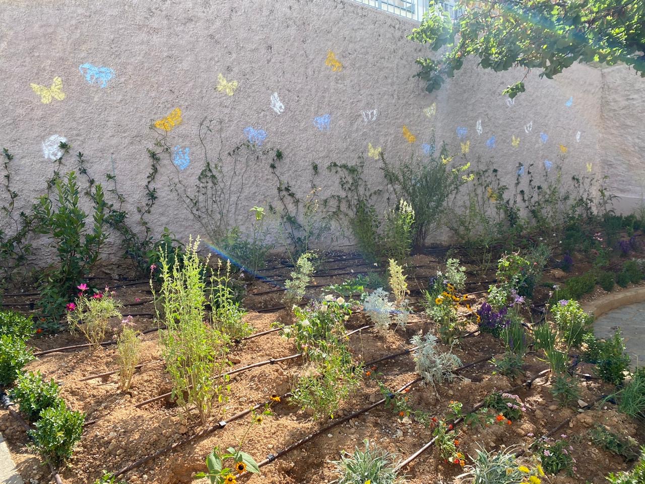 Τα επιμέρους παρτέρια οριοθετούνται από χαμηλό αειθαλή φυτοφράκτη (μυρτιά μικρόφυλλη), έτσι ώστε να παρεμποδίζεται η είσοδος προς αυτά, ενώ με τη φύτευση αναρριχώμενων και ανθοφόρων θάμνων η μια πλευρά μετατρέπεται σε κάθετο πράσινο κήπο. Επιπλέον, στο πάρκο υπάρχουν ειδικές πινακίδες δίπλα σε κάθε φυτό που δίνουν χρήσιμες πληροφορίες για τα την ταυτότητά του, καθώς επίσης και κατασκευές για φωλιές χρήσιμων εντόμων.
