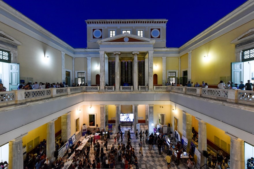 H Βραδιά του Ερευνητή στο ΕΜΠ ξεκίνησε με την ομιλία του Αναπληρωτή Υπουργού Ανάπτυξης και Επενδύσεων, κ. Νίκου Παπαθανάση ο οποίος υπογράμμισε τη διάσταση της εφαρμογής των πορισμάτων της Έρευνας στην Ανάπτυξη.