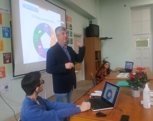 Το Πρότυπο Γενικό Λύκειο Ζωσιμαίας Σχολής Ιωαννίνων επισκέφθηκε την Τετάρτη 23-11-2022, ο Υπεύθυνος Επικοινωνίας του ΟΗΕ για την Ελλάδα και την Κύπρο κ. Δημήτρης Φατούρος, για να επικοινωνήσει με τους μαθητές-τριες του σχολείου και να παρουσιάσει το θέμα: «Ηνωμένα Έθνη: 75 Χρόνια στην υπηρεσία της Ανθρωπότητας και οι 17 Στόχοι Βιώσιμης Ανάπτυξης» στο πλαίσιο των δράσεων Δράσεων του Προγράμματος “Σχολεία Πρέσβεις του Ευρωπαϊκού Κοινοβουλίου – EPAS 2022-23”.